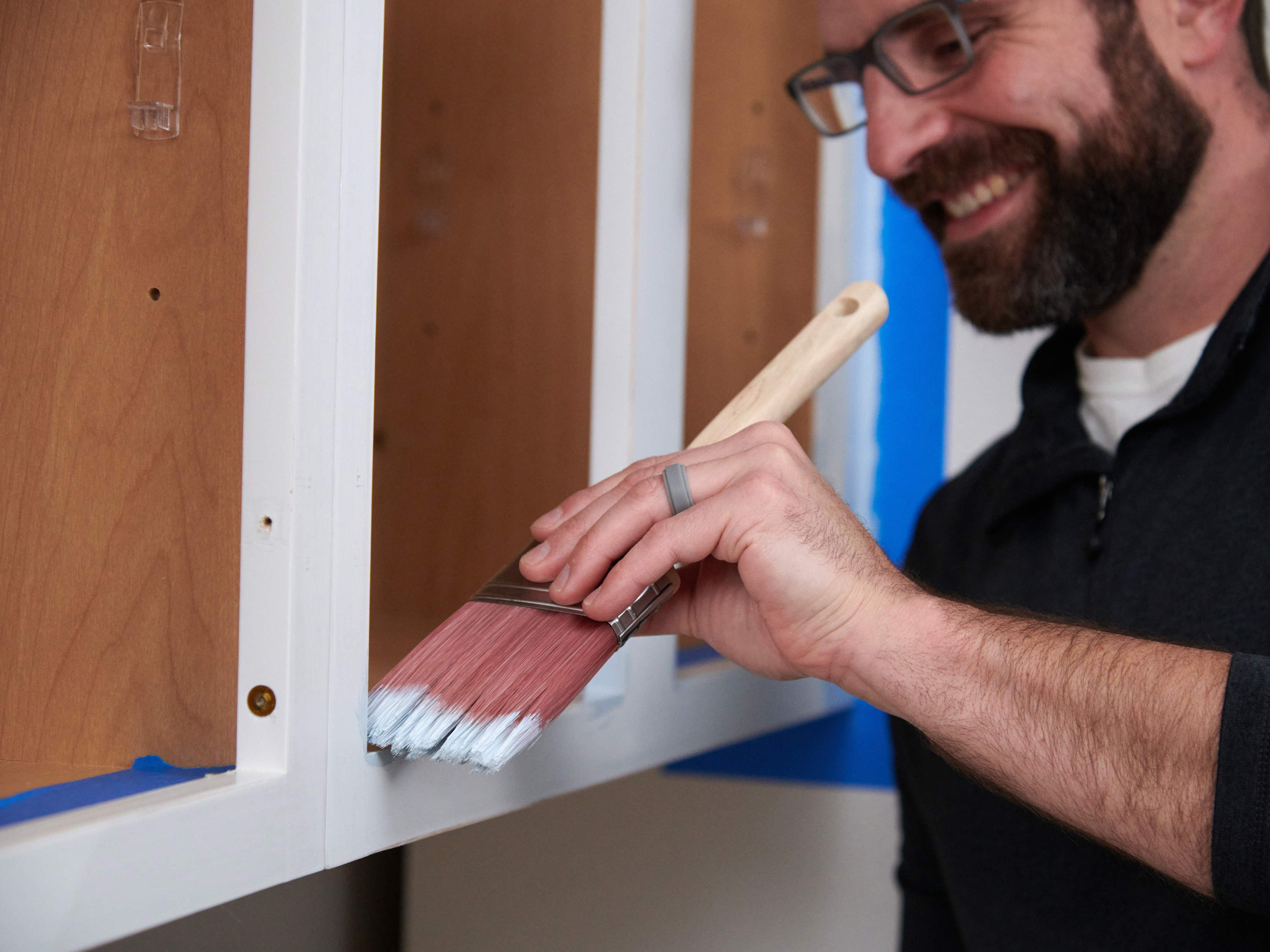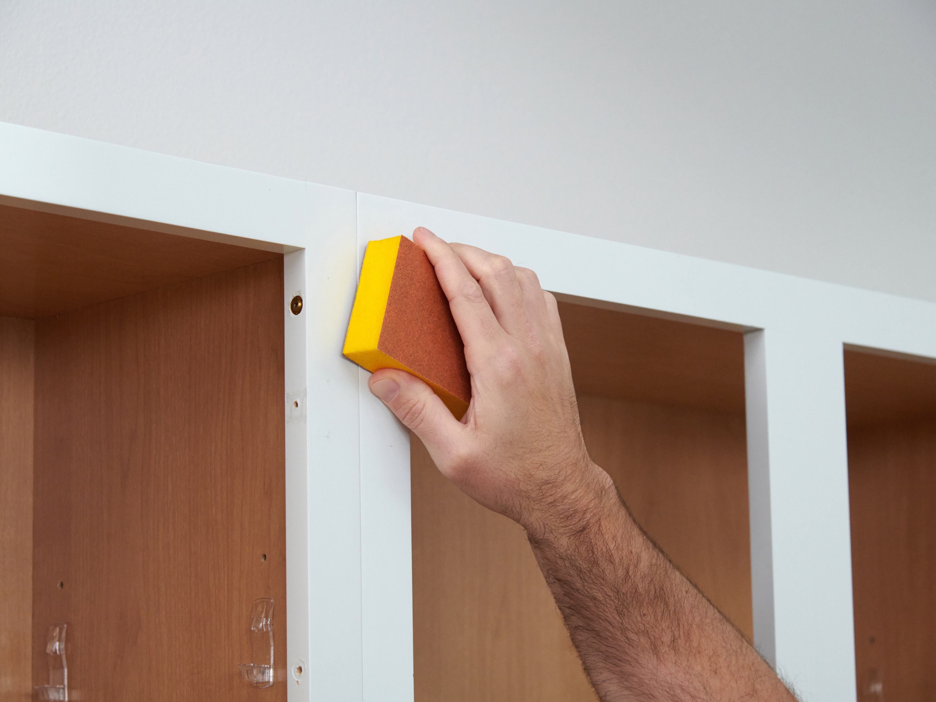 - Remove cabinet doors, drawers, and hardware.